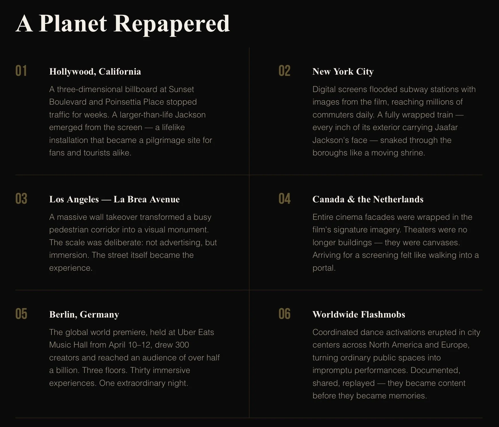 The marketing machine behind Michael has been described, without exaggeration, as one of the most aggressive promotional campaigns in modern cinema. Billboards. Flashmobs. Influencer events across three continents. An entire world remade, briefly but unmistakably, in the image of one man.